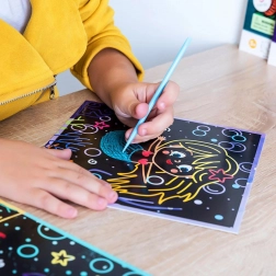 Set DODO slikovnica za struganje donosi djeci zabavu i razvoj vještina u jednom. Zahvaljujući donjem obojenom sloju, prilikom struganja postupno se otkrivaju raznoliki motivi morskih sirena koji će oduševiti djecu.