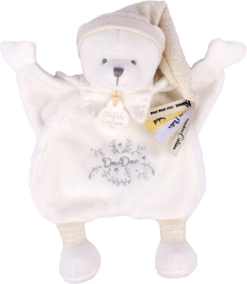 Preslatka tješilica brenda DOUDOU idealan je prvi mazilac za bebe već od rođenja. Nudi mekani premium pliš, nježne trendi boje i umirujući dodir koji pruža osjećaj sigurnosti. Medvjedić s bež kapicom, bijelim ovratnikom i diskretnim DOUDOU vezom je sjajan poklon za novorođenče i ispunjava europske CE norme.
