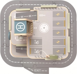 U pakiranju se nalazi sve potrebno za trenutačnu igru – četiri autića, helikopter, tri prometna znaka, autopraonica i dvije benzinske/punionice, od kojih jedna služi kao punjač za električna vozila. Sigurna drvena izrada i izdržljiva konstrukcija jamče dug vijek trajanja i pri svakodnevnoj igri.