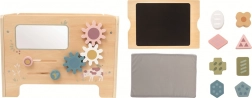 Pružite djeci zabavu i tijekom sjedenja s ovom multifunkcionalnom motoričkom stolicom 2Kids Toys. Ispod sjedala skriva se ploča za crtanje, a sa strana su labirint sa životinjama, umetanje oblika, zupčanici, sat i zrcalo. Kombinacija prirodnog drva i pastelnih boja djeluje harmonično te razvija finu motoriku, logičko razmišljanje i kreativnost.
