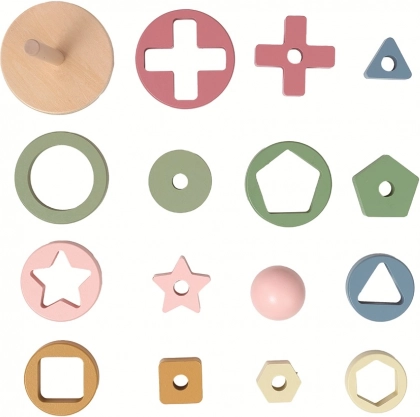 Otkrijte svijet boja i oblika s drvenom igračkom za najmlađe! Ova pametna slagalica kombinira umetanje i slaganje prstenova s različitim izrezima koje treba pravilno poravnati. Razvija finu motoriku, koordinaciju oko-ruka i prepoznavanje oblika i veličina. Prirodna drvena izrada u nježnim zemljanim tonovima savršeno se uklapa u dječju sobu.
