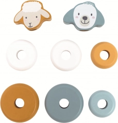 Ova drvena balansirajuća igračka donosi zabavno slaganje šarenih kolutića i životinjskih glavica na dvije šipke. Platforma se pri svakom pomaku naginje, a djeca istražuju kako složiti ovčicu i psića tako da sve ostane u ravnoteži. Tijekom igre razvijaju strpljenje, logičko razmišljanje i osjećaj za ravnotežu.