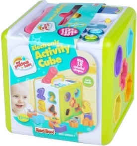 Kocka je opremljena svjetlosnim i zvučnim efektima, koji pojačavaju iskustvo igranja i pomažu razvoju senzornog opažanja djeteta. Osim toga, zahvaljujući praktičnoj ručki lako se prenosi.