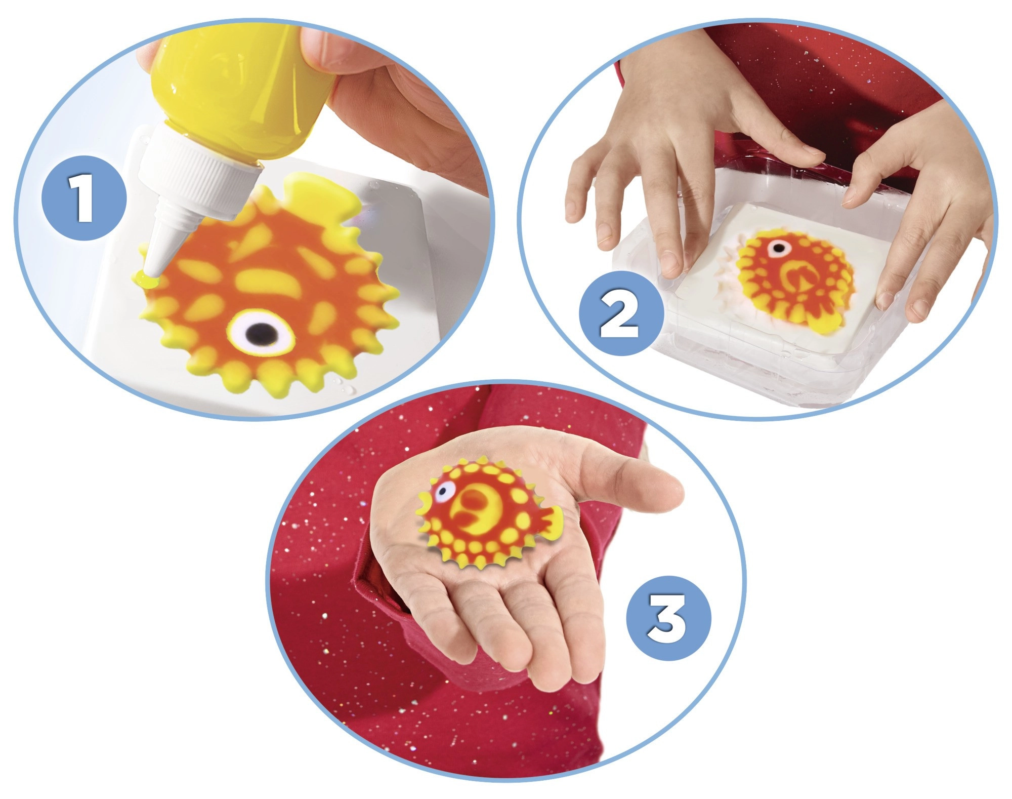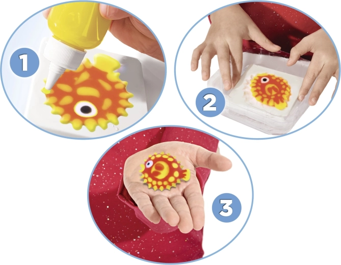 Pomiješajte otopinu, ispunite kalup gelom i uronite u vodu – u trenu nastaje mekana 3D figurica spremna za igru.