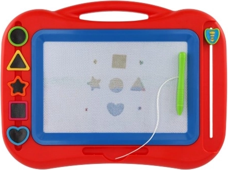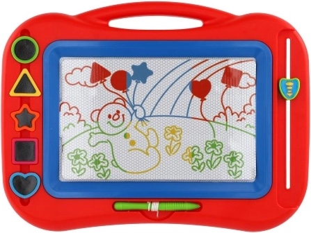 Pretvorite svaku ideju u crtež – ova šarena magnetna ploča omogućuje djeci crtanje, pečatiranje i isprobavanje novih oblika iznova i iznova. Dovoljno je povući kliznu traku za brisanje i površina je u trenu čista. Idealna za dom, vrtić i putovanja – bez boja, papira i mrlja.