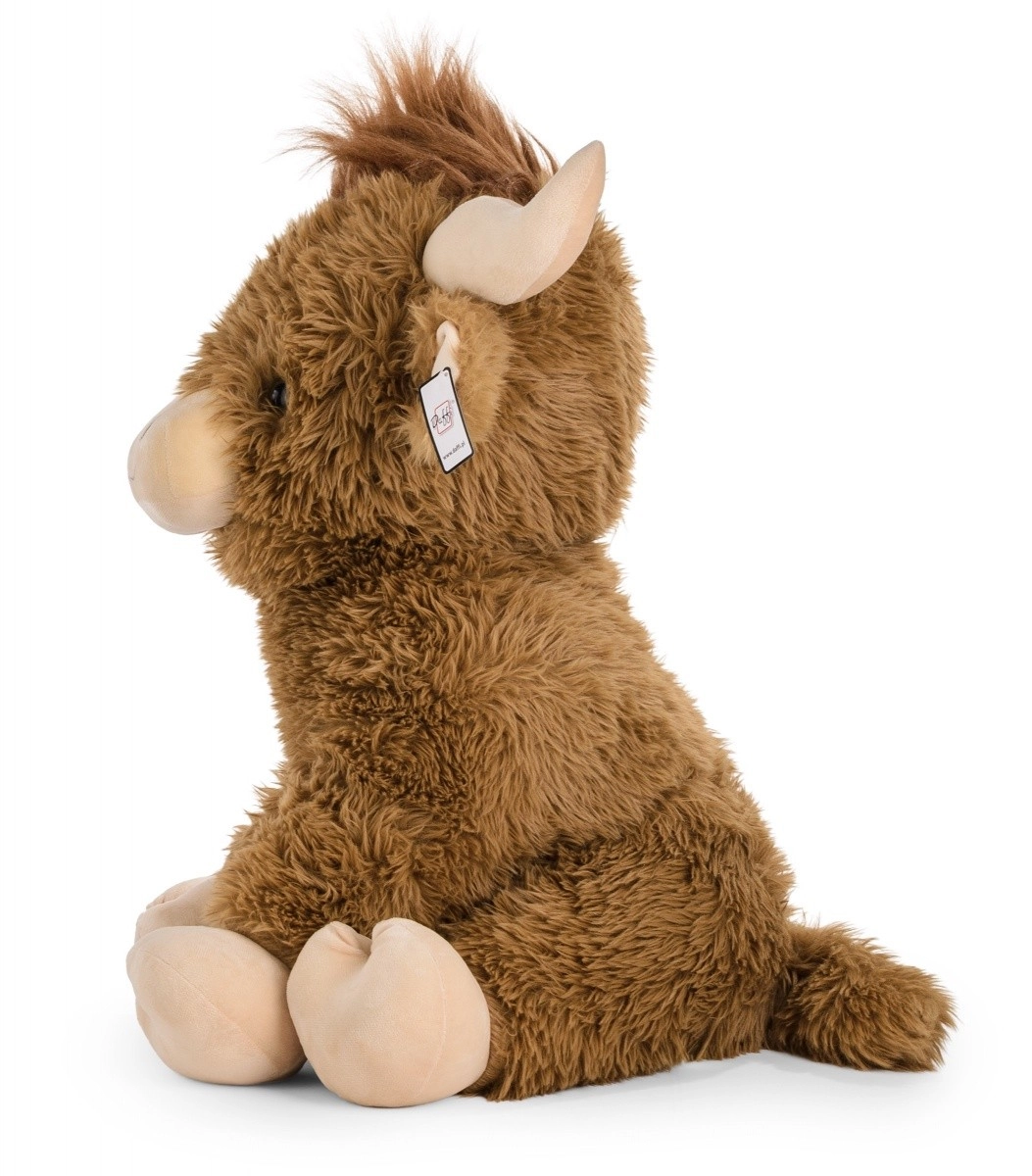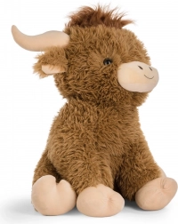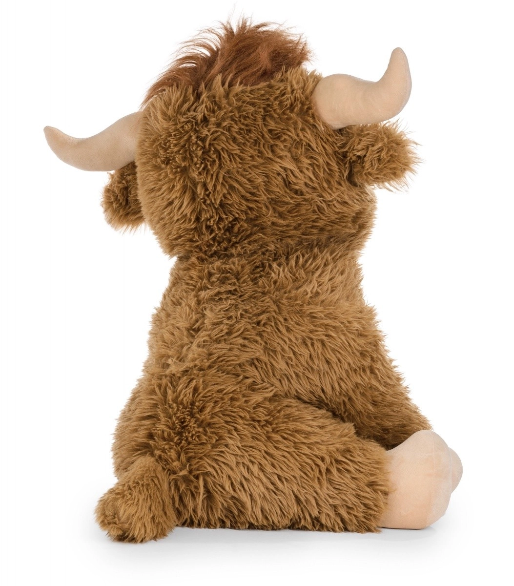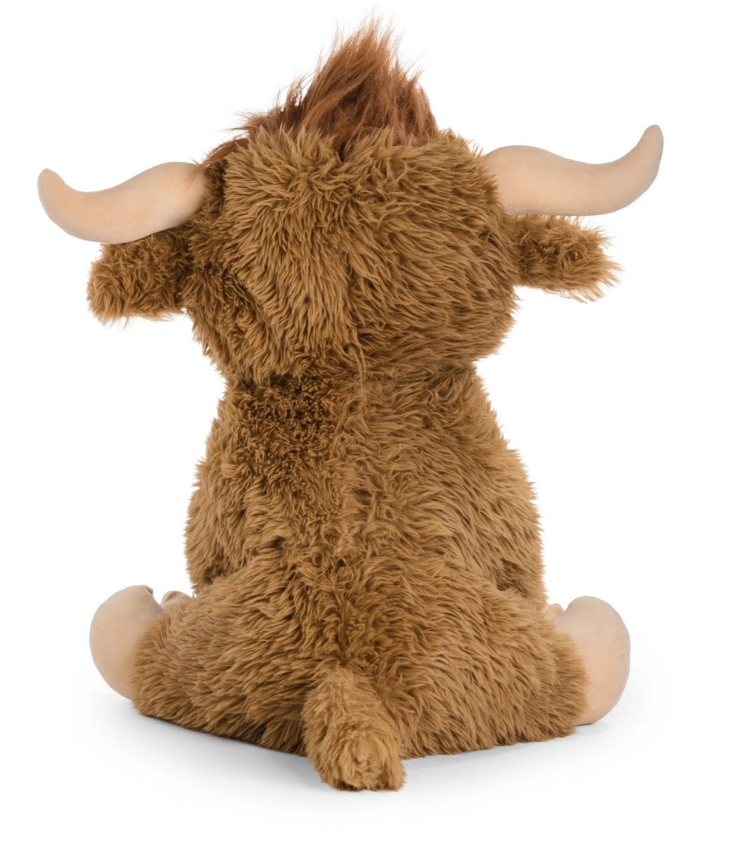 Ova plišana kravica Highland oduševljava dugom pufastom dlakom, nježnim rogovima i dragim osmijehom. Izrađena je od kvalitetnog, mekanog materijala koji poziva na zagrljaj, a ima stabilan sjedeći oblik za jednostavno postavljanje na krevet, policu ili kauč.