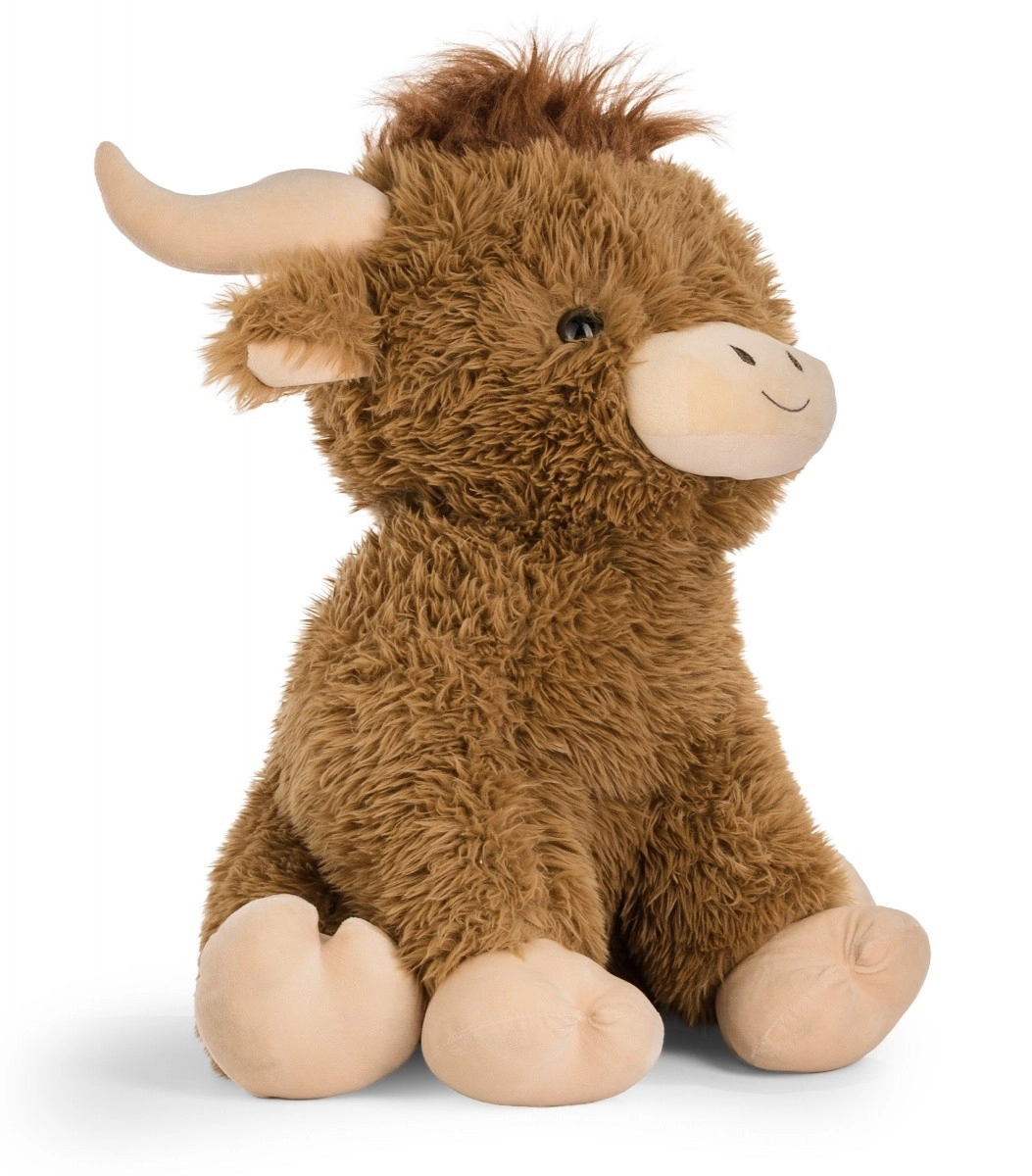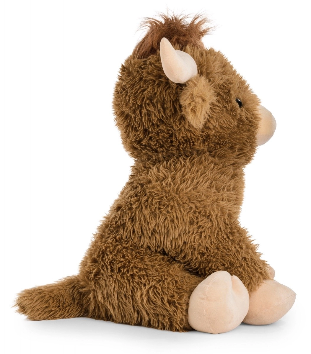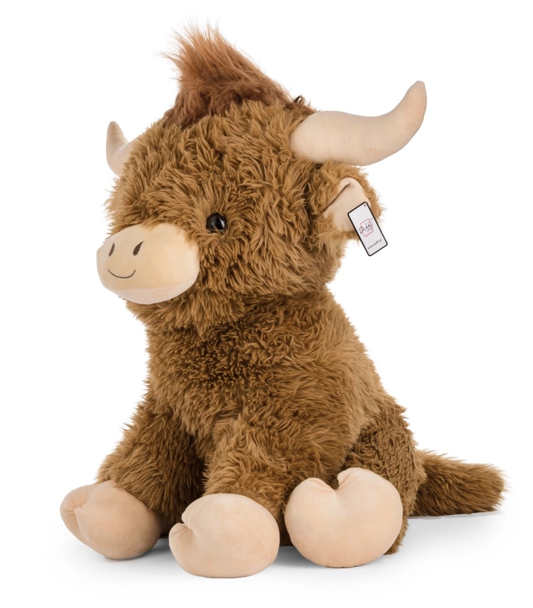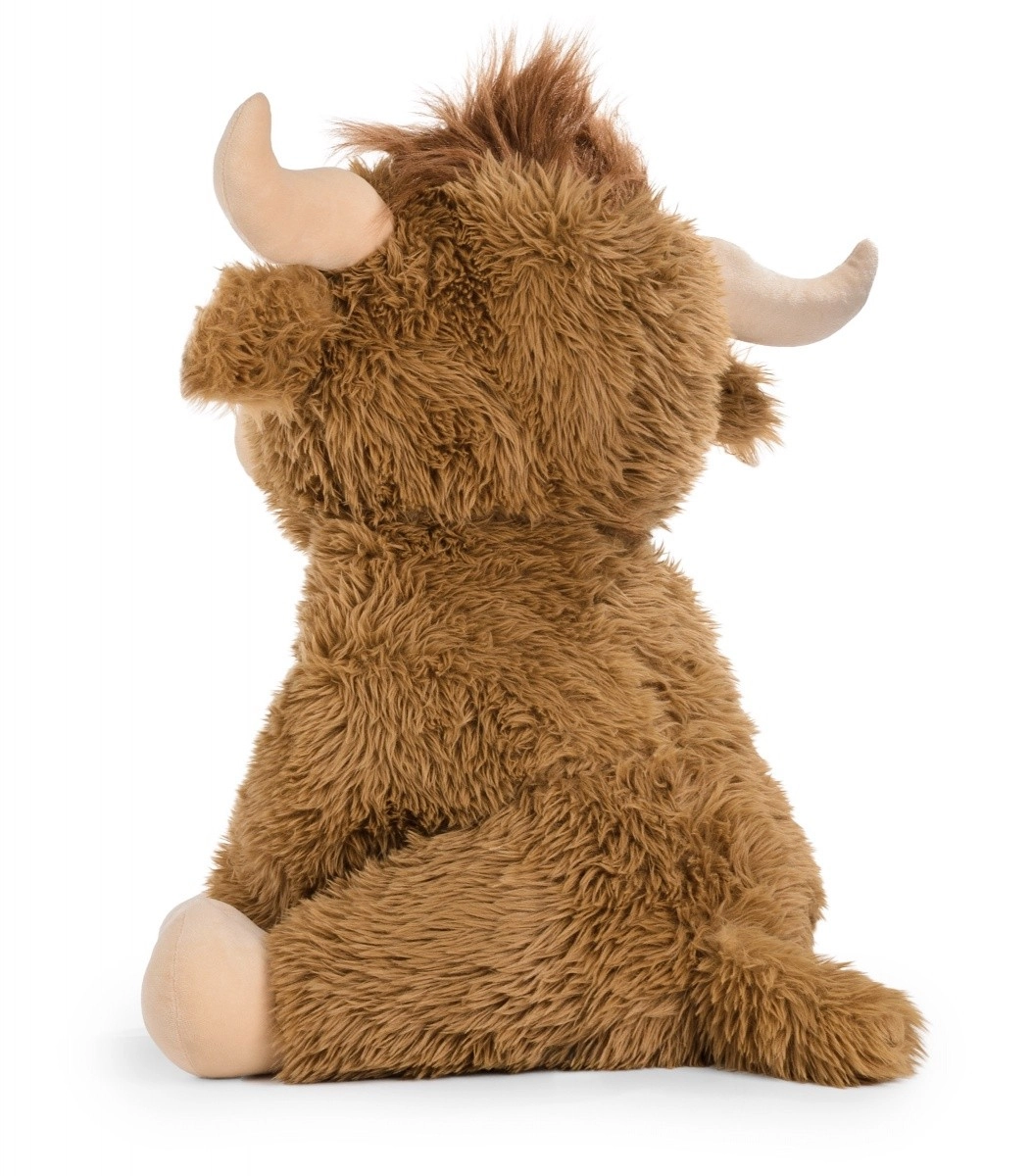 Ova plišana kravica Highland oduševljava dugom pufastom dlakom, nježnim rogovima i dragim osmijehom. Izrađena je od kvalitetnog, mekanog materijala koji poziva na zagrljaj, a ima stabilan sjedeći oblik za jednostavno postavljanje na krevet, policu ili kauč.