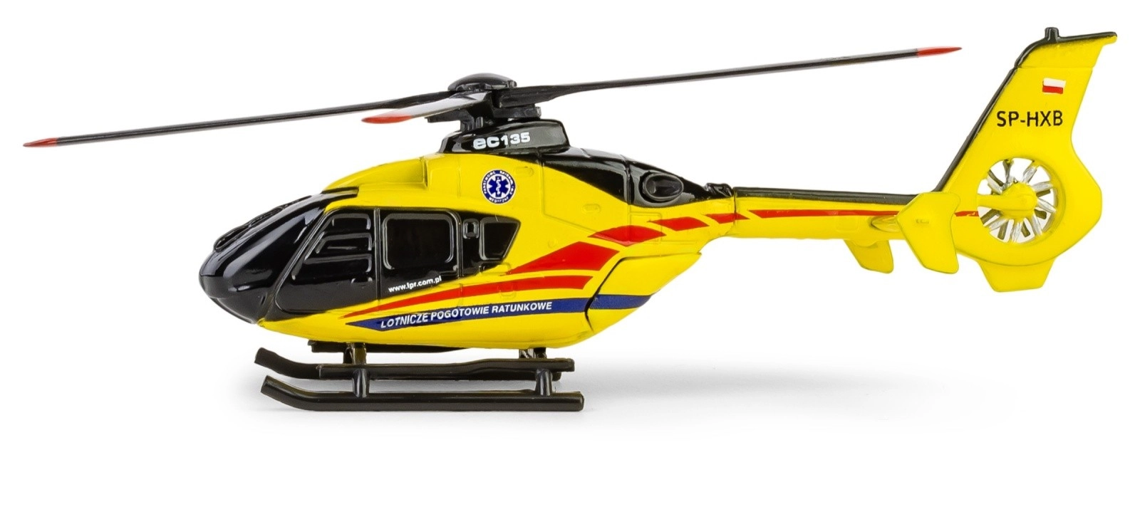 Ovaj licencirani model vjerno prikazuje helikopter AIRBUS EC135 koji koristi zračno-medicinska služba. Precizan tisak i autentične oznake odgovaraju stvarnoj shemi boja, zbog čega model odlično izgleda u kolekciji ili na radnom stolu.