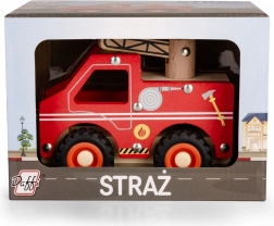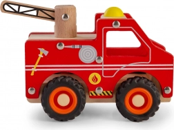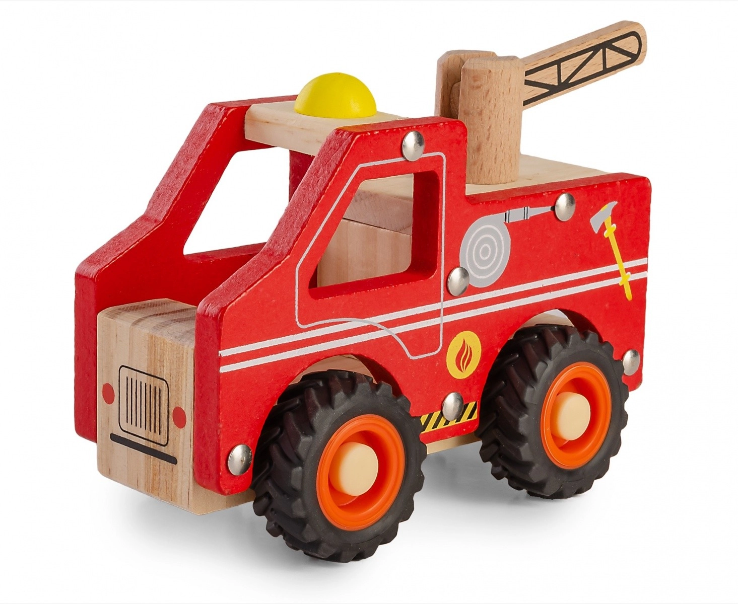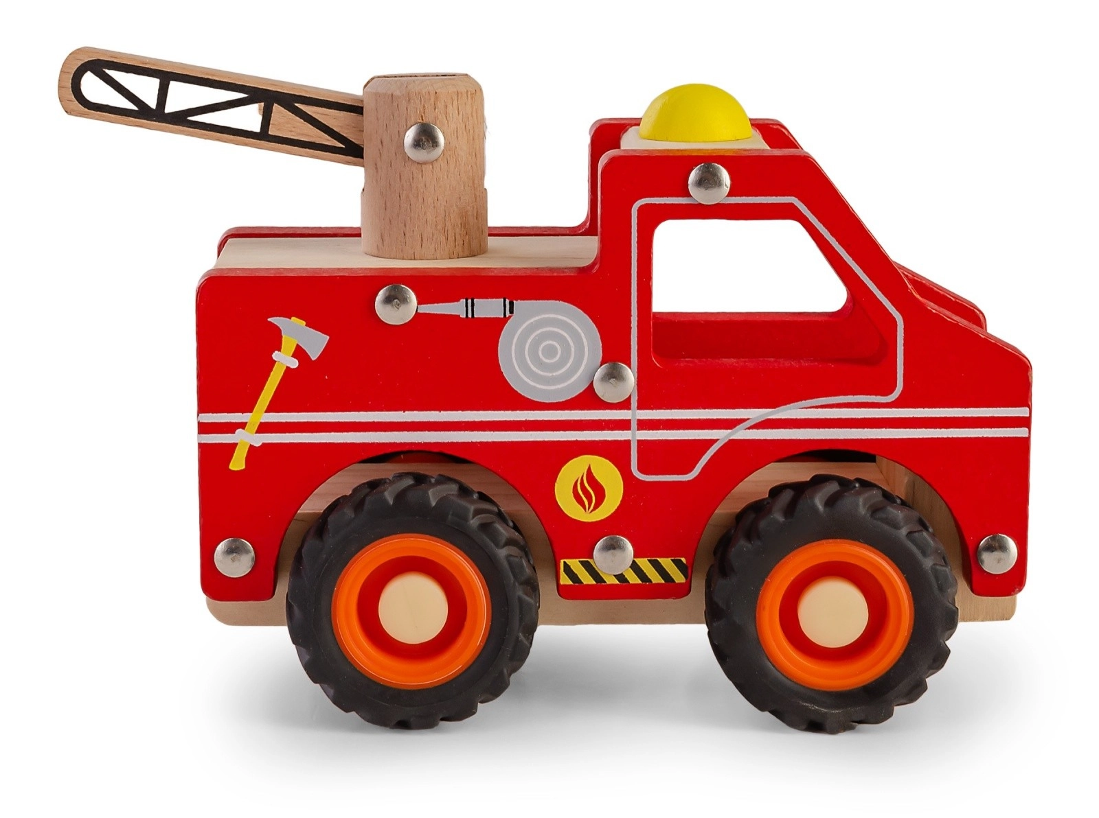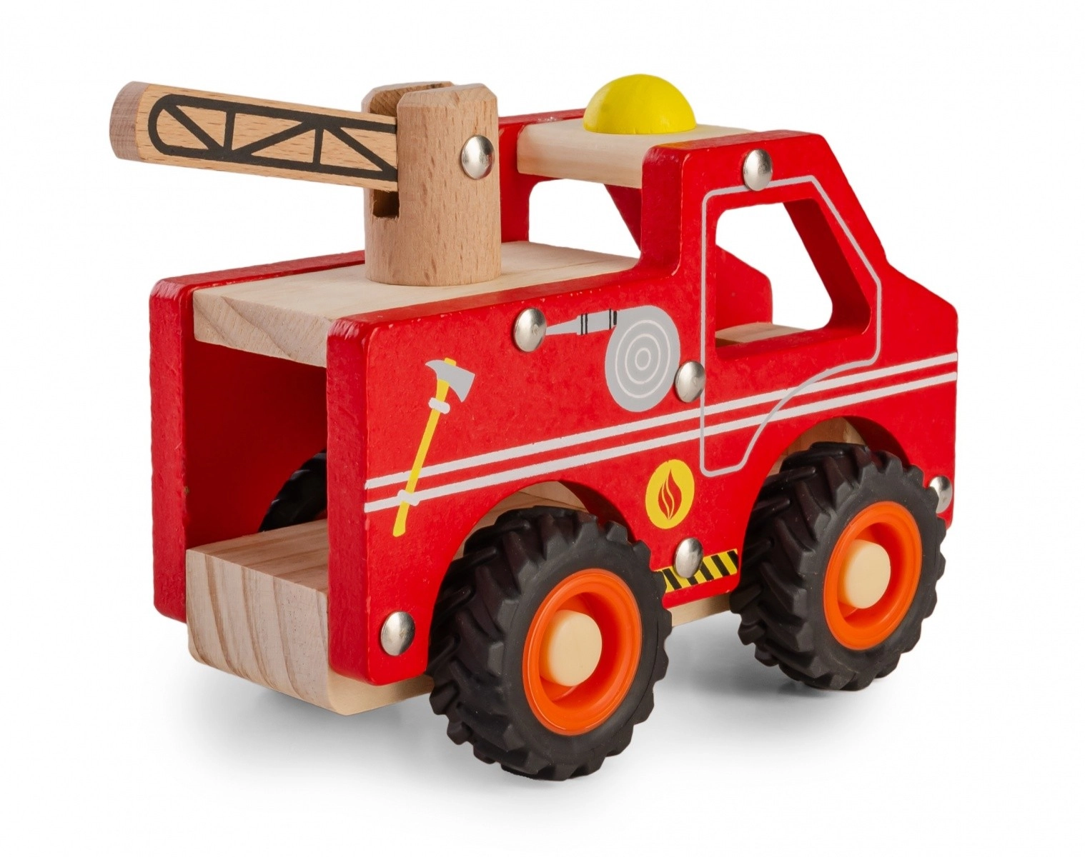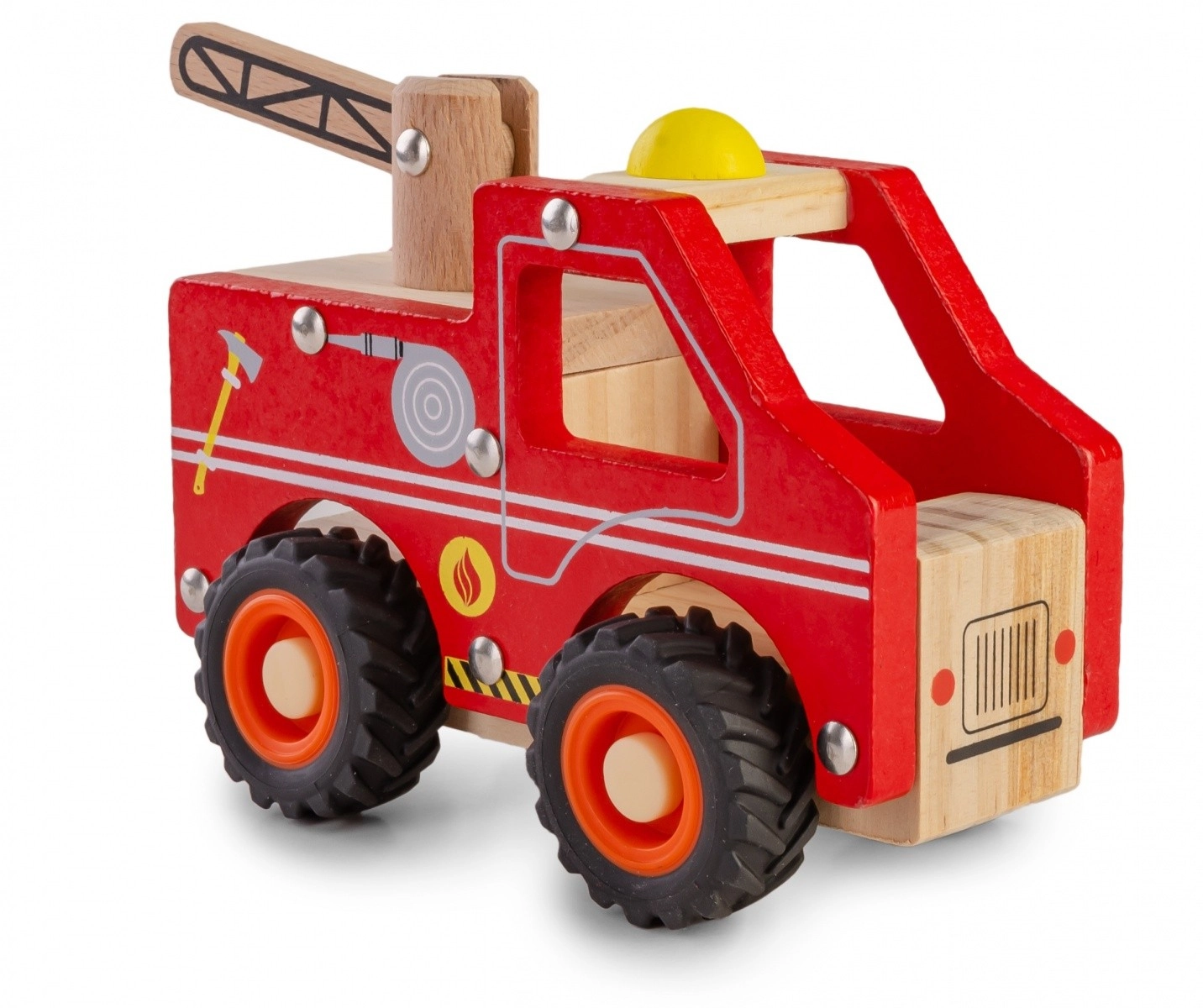 Drveni vatrogasni automobil spaja izdržljivu konstrukciju s privlačnim dizajnom. Zahvaljujući mekim gumenim kotačima vožnja je tiha i nježna prema podu, dok zaobljeni rubovi i netoksične boje osiguravaju sigurnost i za najmlađe.