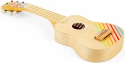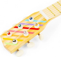 Drvena dječja gitara BIGJIGS TOYS dizajnirana je upravo za male ruke. Šest najlonskih žica koje se mogu naštimati omogućuje djeci isprobavanje jednostavnih ritmova i akorda, dok lagano tijelo od FSC drva osigurava udobno držanje. Šarene pruge daju gitari privlačan izgled koji motivira djecu na sviranje.