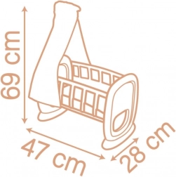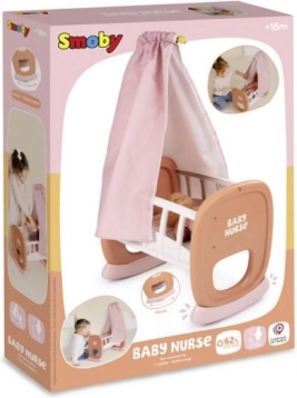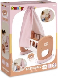 Slatka kolijevka za lutke SMOBY Baby Nurse s tekstilnim baldahinom osigurava miran san i nježno ljuljanje. Služi kao kolijevka i krevetić, baldahin je lako odvojiv i periv, a kvalitetnu plastiku možete jednostavno obrisati. Prikladno za lutke do 42 cm i proizvedeno u Francuskoj s udjelom recikliranih materijala.