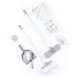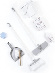 U setu su lopatica i metlica, mop, četka, kanta i imitacije sredstava za čišćenje – sve za igru uloga i razvoj fine motorike.