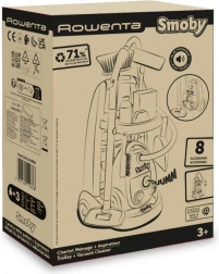 Ova stilska kolica za čišćenje s ROWENTA licencom pretvaraju kućno čišćenje u omiljenu igru. Djeca zahvaljujući realističnom usisavaču s pravim zvukom mogu oponašati odrasle, dok ergonomski oblikovani alati savršeno pristaju dječjim rukama. Laka i jednostavna za upravljanje konstrukcija omogućuje sigurno rukovanje i mlađoj djeci.