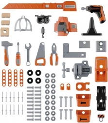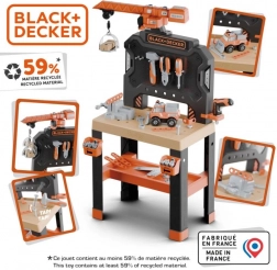 Dio seta je i komplet za auto koji mali mehaničari lako sastave u nekoliko koraka. Radionica sadrži čekić, ključ za kotače, odvijač, plosnati/viljuškasti ključ, kliješta, pilu, veliku stegu i pomično mjerilo, dalje vijke, matice, čavle i spojni materijal. Kompatibilna i proširiva sa svim alatima BLACK+DECKER marke Smoby.