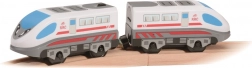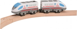 Moderan brzi vlak na baterije za drvene željezničke pruge oduševit će svakog malog strojovođu. Stilski plavo-bijeli sastav s realističnim detaljima, magnetskim spajanjem i samostalnom vožnjom nudi puno akcije te razvija finu motoriku, koordinaciju i maštu. Kompatibilan s većinom uobičajenih drvenih tračnica.