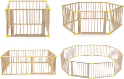 Ova prostrana drvena ogradica XXL idealno je rješenje za roditelje koji žele djetetu stvoriti stabilno i sigurno okruženje kod kuće ili u gostima. Osam čvrstih panela s izdržljivim plastičnim spojnicama lako se može složiti u kvadrat, pravokutnik, šesterokut ili osmerokut – točno prema prostornim mogućnostima i trenutačnim potrebama.