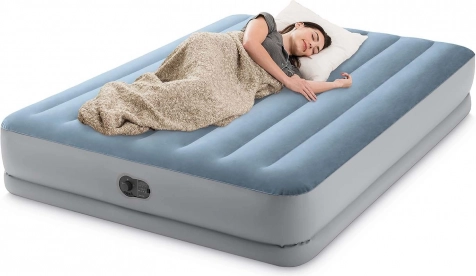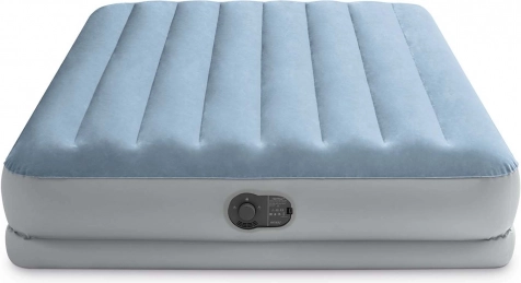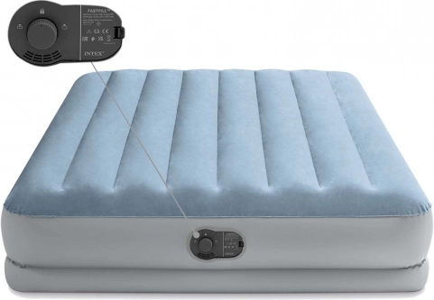 Praktični naduvani krevet INTEX idealan je kao privremeni ležaj za goste, za vikendicu i putovanja. Povišena konstrukcija olakšava lijeganje i ustajanje, dok je velur površina ugodna na dodir i sprječava klizanje plahte. Integrirana električna pumpa priprema ležaj za otprilike 3 minute, a jednako brzo omogućuje i ispuhavanje.