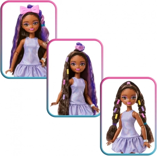 Otvorive kutijice u obliku uvijača kriju slatka iznenađenja za stiliziranje kose, uključujući obojenu kredu i velike mašne. Zahvaljujući dugoj, gustoj kosi i zglobovima za poziranje, uživat ćete u bezbroj modnih i foto scenarija s „telefonom“, „ring lightom“, zrcalom i drugim sitnicama.
