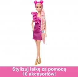 S lutkom BARBIE Igra s kosom djeca stvaraju prekrasne šarene frizure i kombiniraju stylish odjevne kombinacije. Lutka ima ekstra dugu kosu (21,5 cm), a u pakiranju je 10 frizerskih dodataka za beskrajnu kreativnu zabavu.