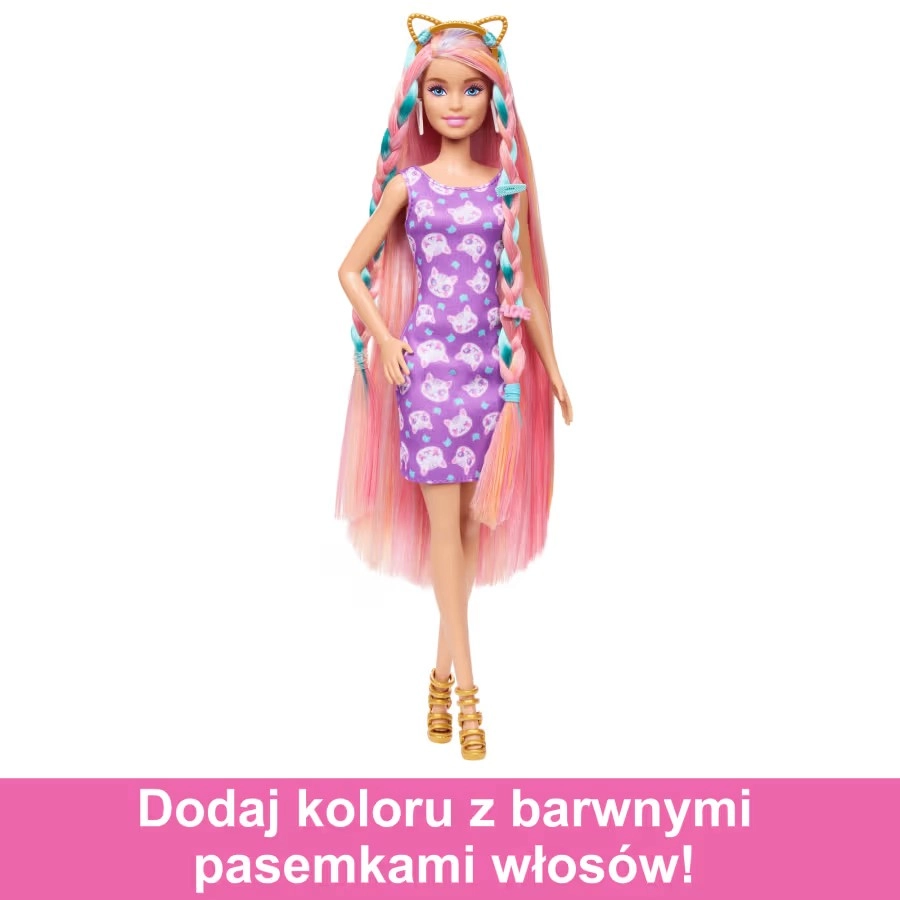 Otkrijte svijet stila s lutkom BARBIE Igra s kosom. Zahvaljujući vrlo dugoj plavoj kosi s obojenim pramenovima i bogatom setu dodataka, djeca mogu stvarati frizure od slatkih punđica do maštovitih pletenica. Stiliziranje lako upotpunjuju sjajne mini haljine, izmjenjive cipele s potpeticom i torbica.