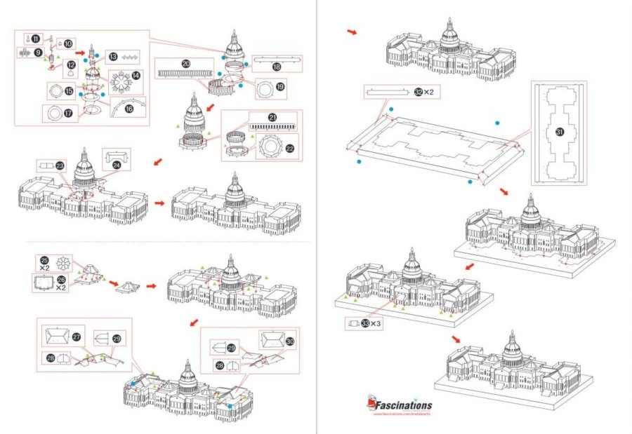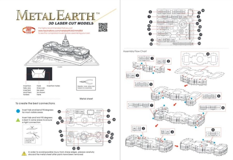 3D slagalica METAL EARTH oduševljava kvalitetom izrade i vjernim detaljima. Iz dva čelična listića dimenzija 11 × 11 cm izvadit ćete dijelove koje ćete pomoću zasuna i savijanja spojiti u dojmljiv model Kapitola. Rezultat je elegantan, metalno sjajan eksponat koji će razveseliti kolekcionare i ljubitelje arhitekture.