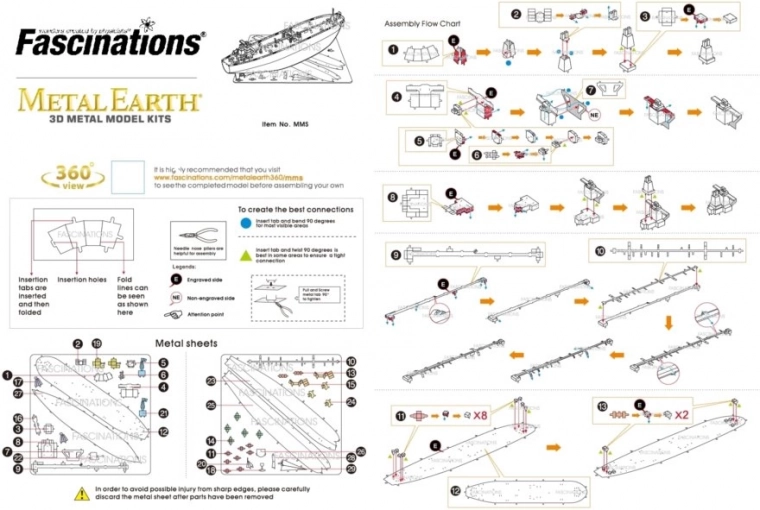 Sastavljanje ne zahtijeva ljepilo – dijelovi se spajaju pomoću zasuna i savijenih kukica. Dovoljno je malo strpljenja, spretne ruke i osnovni alat kako biste ravne čelične pločice pretvorili u zapanjujuće remek-djelo.