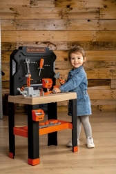 Realistična dječja radionica Smoby Black+Decker Bricolo Center nudi veliki, robustan radni stol s 78 dijelova pribora i 7 alata. Široka radna ploha u drvenom dizajnu, steg, klizno ravnalo i mnoštvo spremnih pretinaca jamče sate kreativnosti i igre. Ne nedostaje ni zabavna funkcija zakucavanja čavala te naglasak na održivost – proizvod sadrži najmanje 75 % recikliranog materijala.