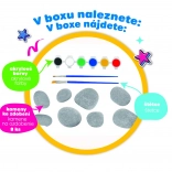 Otkrijte kreativni set za oslikavanje kamenčića koji djeci omogućuje da obične oblutke pretvore u originalna umjetnička djela. Set sadrži sve potrebno za trenutačno stvaranje – kistove, boje i kamenčiće, čime se razvijaju mašta, fina motorika i kreativnost. Pogodno za djecu od 4 godine.