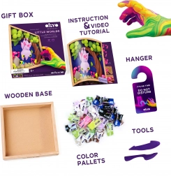 Stvorite vlastitu minijaturnu scenu s motivom šišmiša u elegantnom drvenom okviru dimenzija 21 × 21 cm. Set sadrži sve potrebno – od samostvrdnjavajuće modelarske mase preko drvenog modelarskog alata do akrilnog laka i kista, pa možete odmah započeti s izradom. Idealno za djecu i odrasle koji vole kreativno stvaranje i dekoracije za interijer.