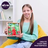Stvorite svoju čarobnu scenu s vilenjakom! Kreativni set brenda OKTO sadrži sve potrebno za izradu 3D dekoracije u drvenom okviru 21 × 21 cm – od samosušeće modelirajuće mase do akrilnog laka i modelirajućeg alata. Jednostavno stvaranje prema slikovitom uputstvu savladat će djeca i početnici.