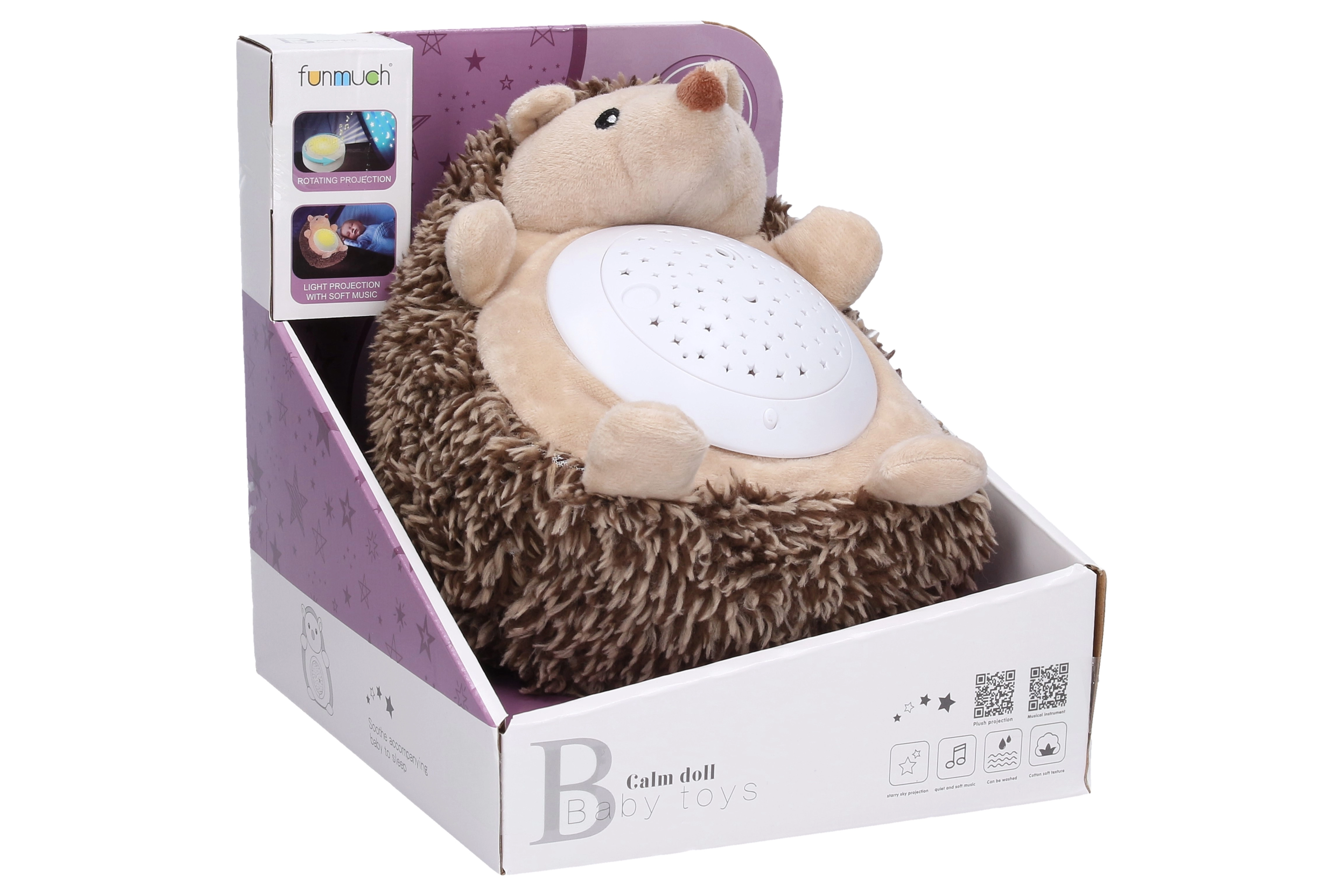 Ova mekana ježica za uspavljivanje izvrstan je pratitelj pri svakom odlasku na spavanje. Projektor na trbuščiću rasvjetljava zvjezdice po prostoriji, reproducira uspavanku i istodobno se nježno okreće kako bi stvorio umirujuću atmosferu za neometan san.