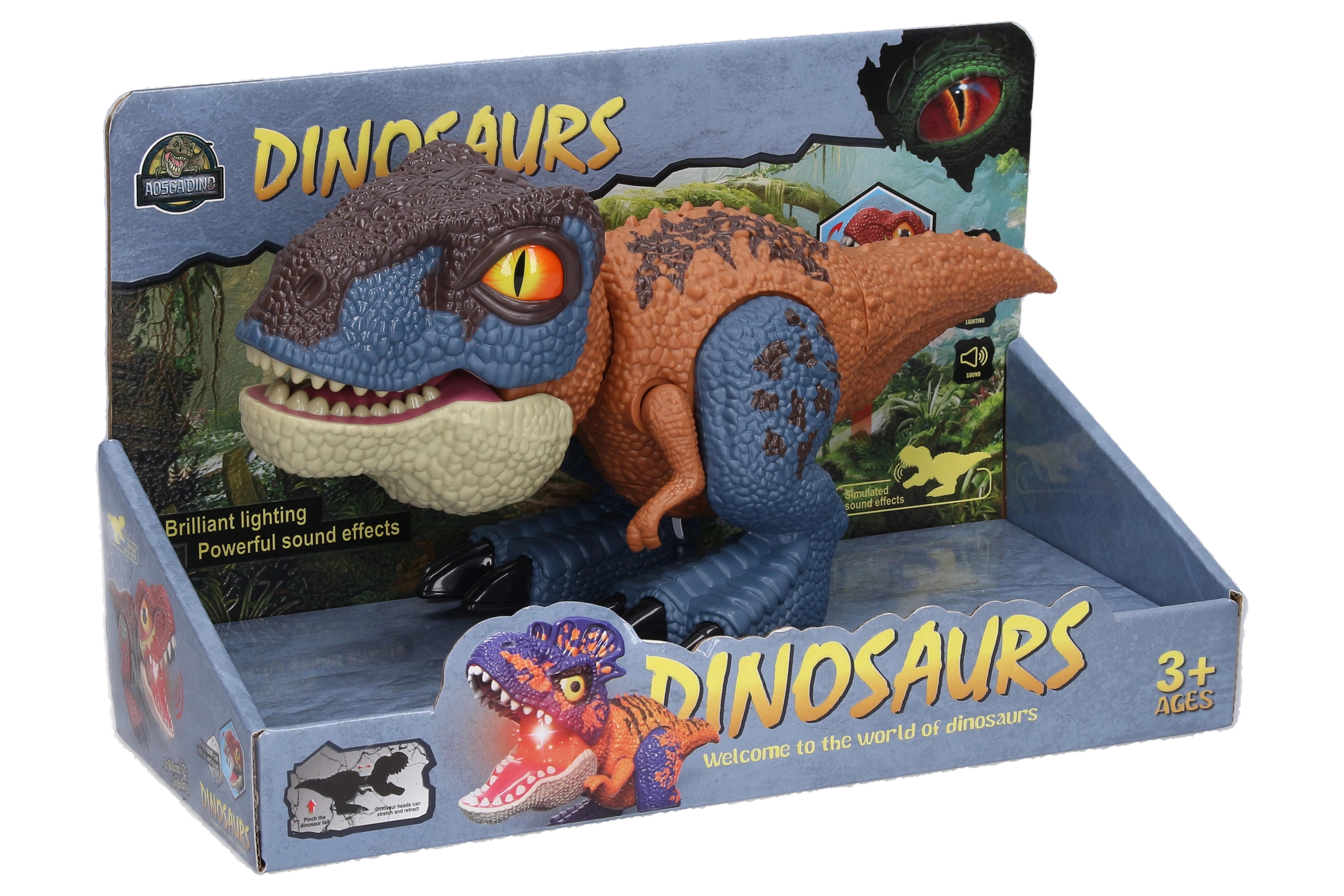 Otkrijte zabavnog smeđeg dinosaura s realističnim svjetlosnim i zvučnim efektima koji će oduševiti svakog malog pustolova. Jednim pritiskom gumba izvlači se glava i otvara čeljust uz svjetlosne i zvučne efekte. Tu su i pokretni udovi, rep te ručno otvarajuća čeljust. Baterije 3× AG13 uključene su u pakiranje.