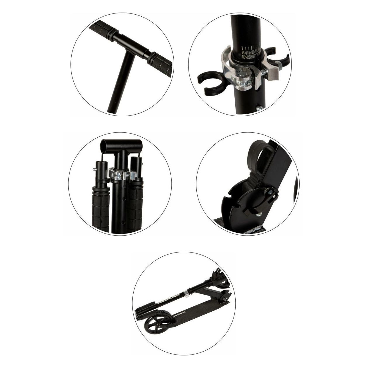 Lagan i izdržljiv gradski romobil za djecu i tinejdžere s lakim sklapanjem, podesivom visinom 95–105 cm, velikim kotačima 200 mm s ležajevima ABEC-7 i prednjim ovjesom. Nudi protukliznu podlogu, stražnju nožnu kočnicu i nosač za praktično parkiranje. Maksimalno opterećenje 80 kg.