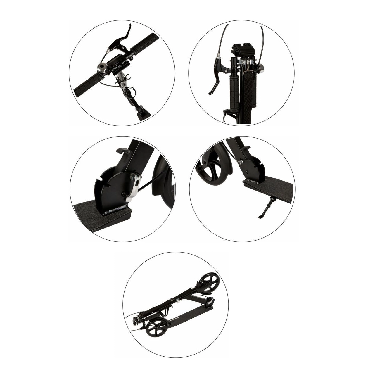 Lagan gradski romobil od aluminija za djecu i tinejdžere nudi velike kotače 200 mm s ležajevima ABEC-7, podesivu upravljaču 95–105 cm, prednje ovjesno opruženje i sklopivi okvir. Za sigurnu vožnju tu su ručna i nožna kočnica, protuklizna platforma, nogar, zvonce i praktični držač za bocu. Maksimalna nosivost 80 kg.