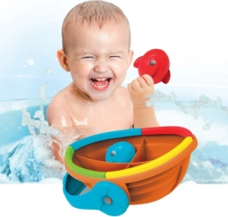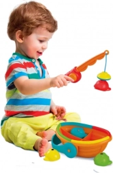 Zabavna logička igra za najmlađe: djeca love 4 šarene ribice magnetskom udicom i umeću ih u odgovarajuće pretince u čamcu. Podržava koordinacijske sposobnosti, logičko razmišljanje i učenje boja. Izrađeno od reciklirane plastike, u duhu Play For Future, s nježnim bojama prikladnima za malu djecu. Čamac pluta na vodi – idealno i za kupanje.