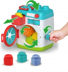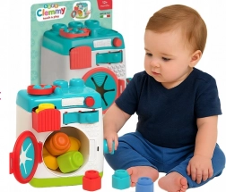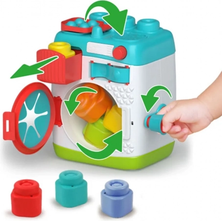 Upoznajte čarobnu igračku koja spaja interaktivnu mehaničku akciju s sigurnim, mekim kockicama Clemmy. Djeca okretanjem bočnog kotačića promatraju „perilni” efekt i prirodno vježbaju koordinaciju oko–ruka i logičko razmišljanje. Realističan izgled perilice ujedno potiče igre kućanstva.