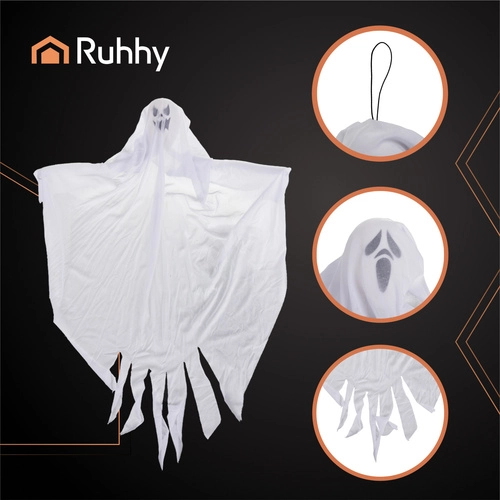 Stvorite jezivu atmosferu u domu i vrtu s setom od tri viseća duha RUHHY visine 75 cm. Laka, bijela tkanina njiše se na vjetru i stvara dojam lebdećih prikaza. Svaki duh ima drugačiji izraz, što djeluje još autentičnije. Idealan za Halloween, tematske zabave, ukrašavanje doma, vrta i poslovnih prostora, a zahvaljujući lakom vješanju montaža je brza i jednostavna.