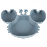 Kompletan silikonski set za hranjenje za najmlađe s preslatkim tanjurom u obliku raka, zdjelicom, čašicom s dva poklopca i slamkom, priborom za jelo te podesivom podbradnom. Silikon bez BPA, prijanjajuće podloge protiv prevrtanja i jednostavno čišćenje čine ovaj set idealnim izborom za prve samostalne obroke.