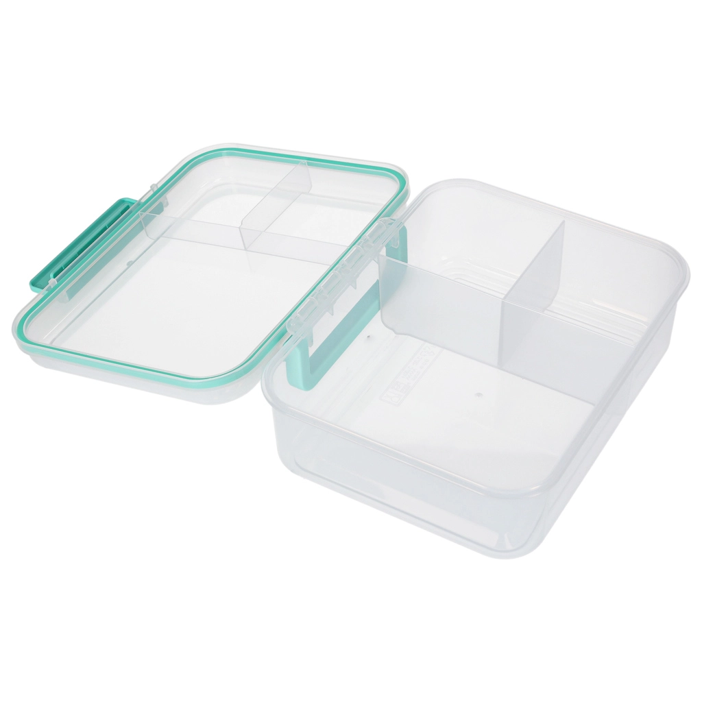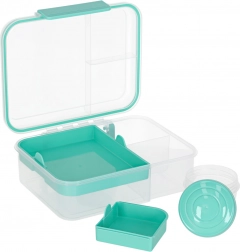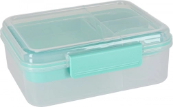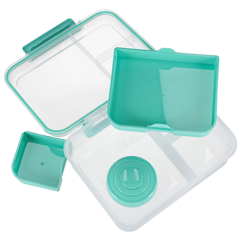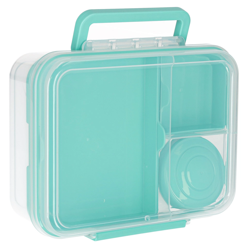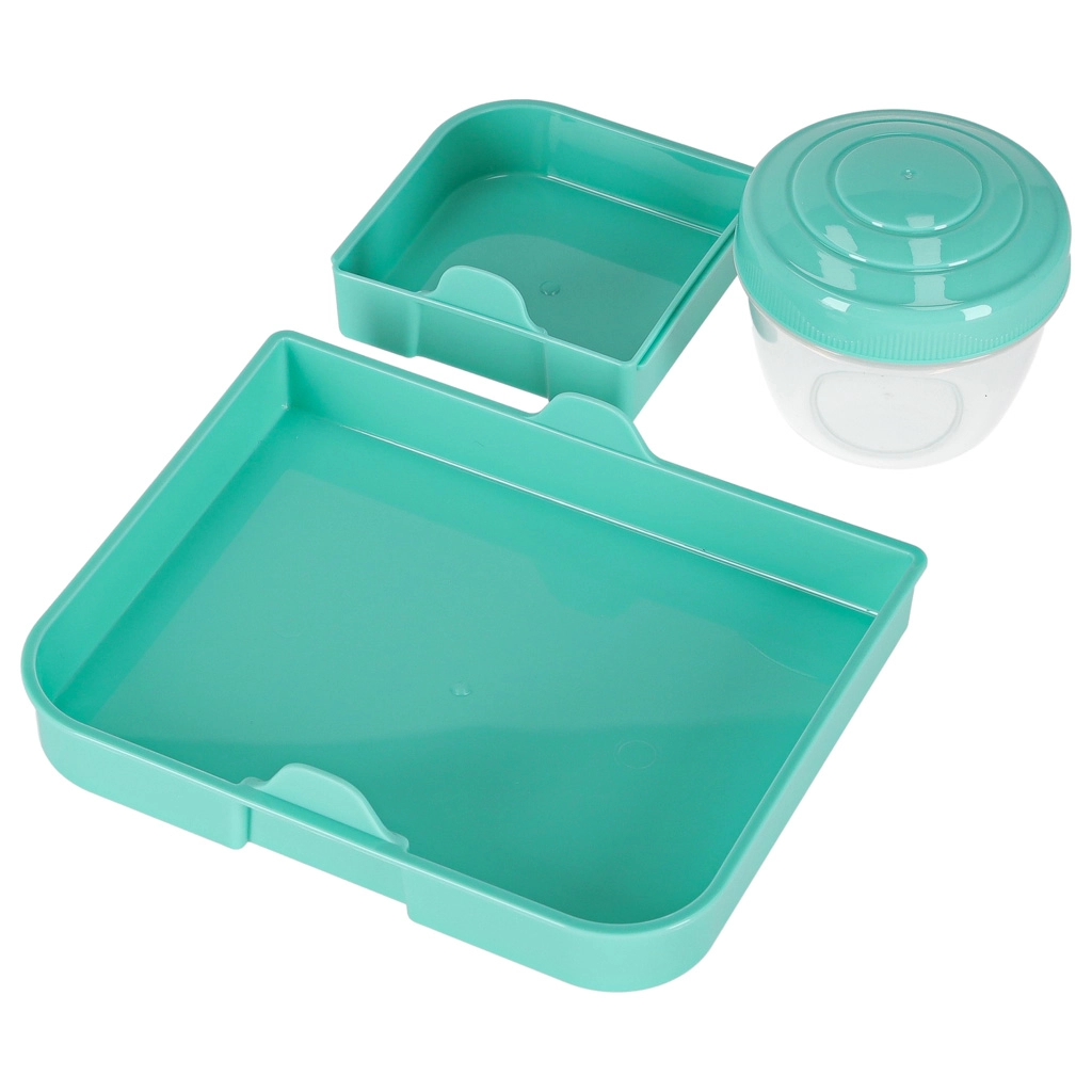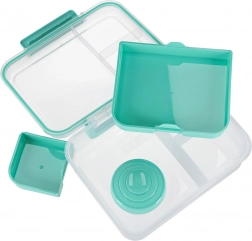 Moderna kutija za hranu u mint boji nudi veliki kapacitet i pametnu organizaciju za svakodnevnu zdravu prehranu. Modularni umetci i izvadljive razine omogućuju odvajanje sendviča, salata, voća i grickalica. Prozirni elementi olakšavaju brzu provjeru sadržaja, a lagana konstrukcija lako se nosi.