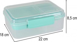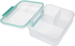 Praktična i prostrana kutija za ručak kapaciteta 2200 ml za posao, školu i putovanja. Zahvaljujući promišljenom rasporedu pregrada i zasebnoj posudici za dressing (150 ml), vaša će hrana ostati svježa, okusi se neće miješati, a sve će biti sigurno zatvoreno zahvaljujući silikonskom brtvljenju i čvrstom kopčanju. Izrađena od BPA free materijala, prikladna za perilicu posuđa i mikrovalnu.