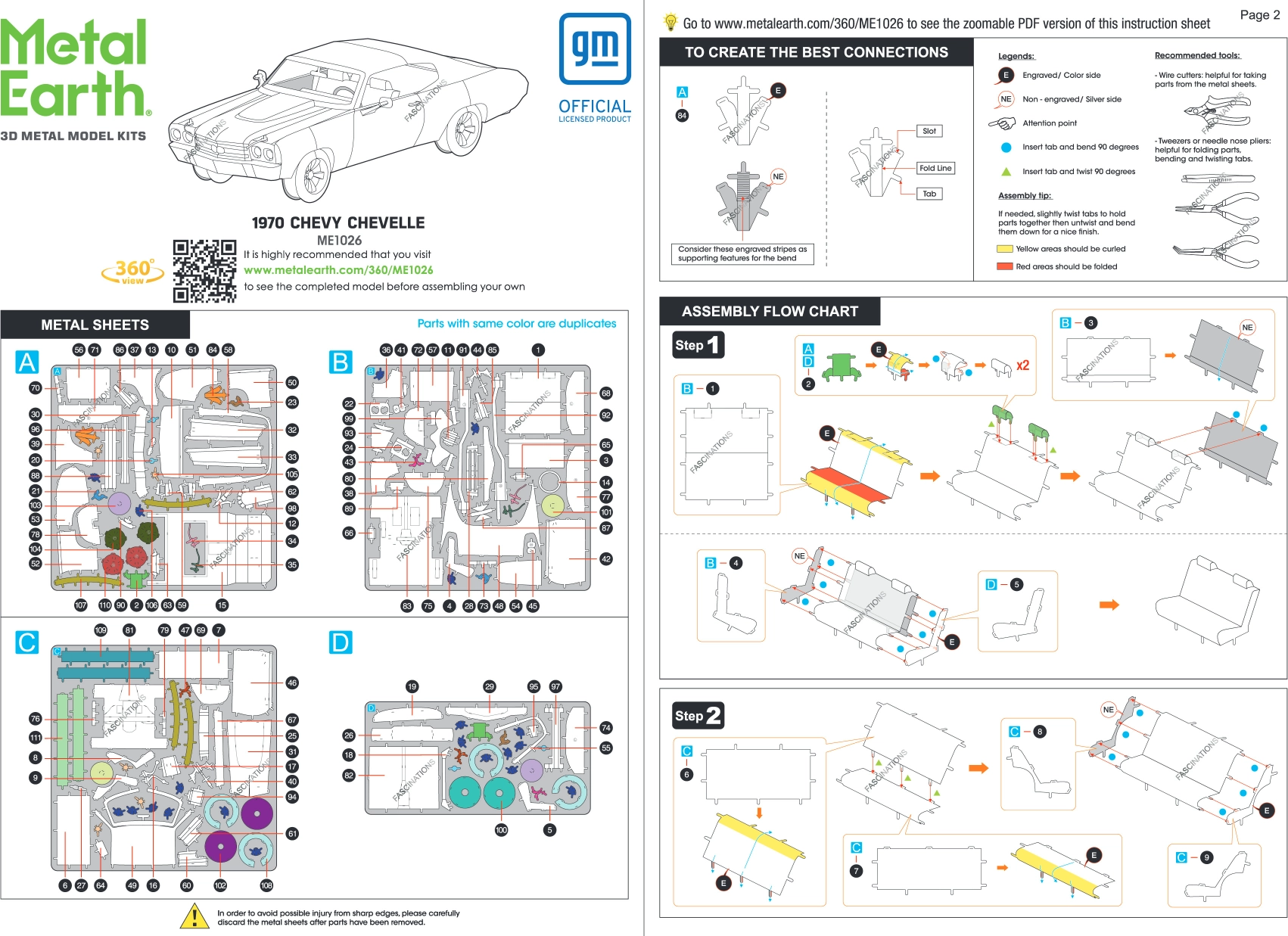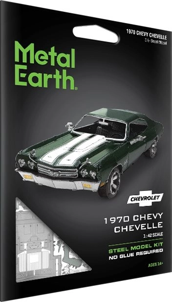 Otkrijte čar metalnih setova METAL EARTH i izradite vjernu minijaturu legendarnog muscle automobila 1970 Chevrolet Chevelle. Dijelovi se izdvajaju iz nehrđajućih pločica i spajaju kopčama – bez kapi ljepila. Precizno lasersko graviranje daje modelu autentičan izgled.