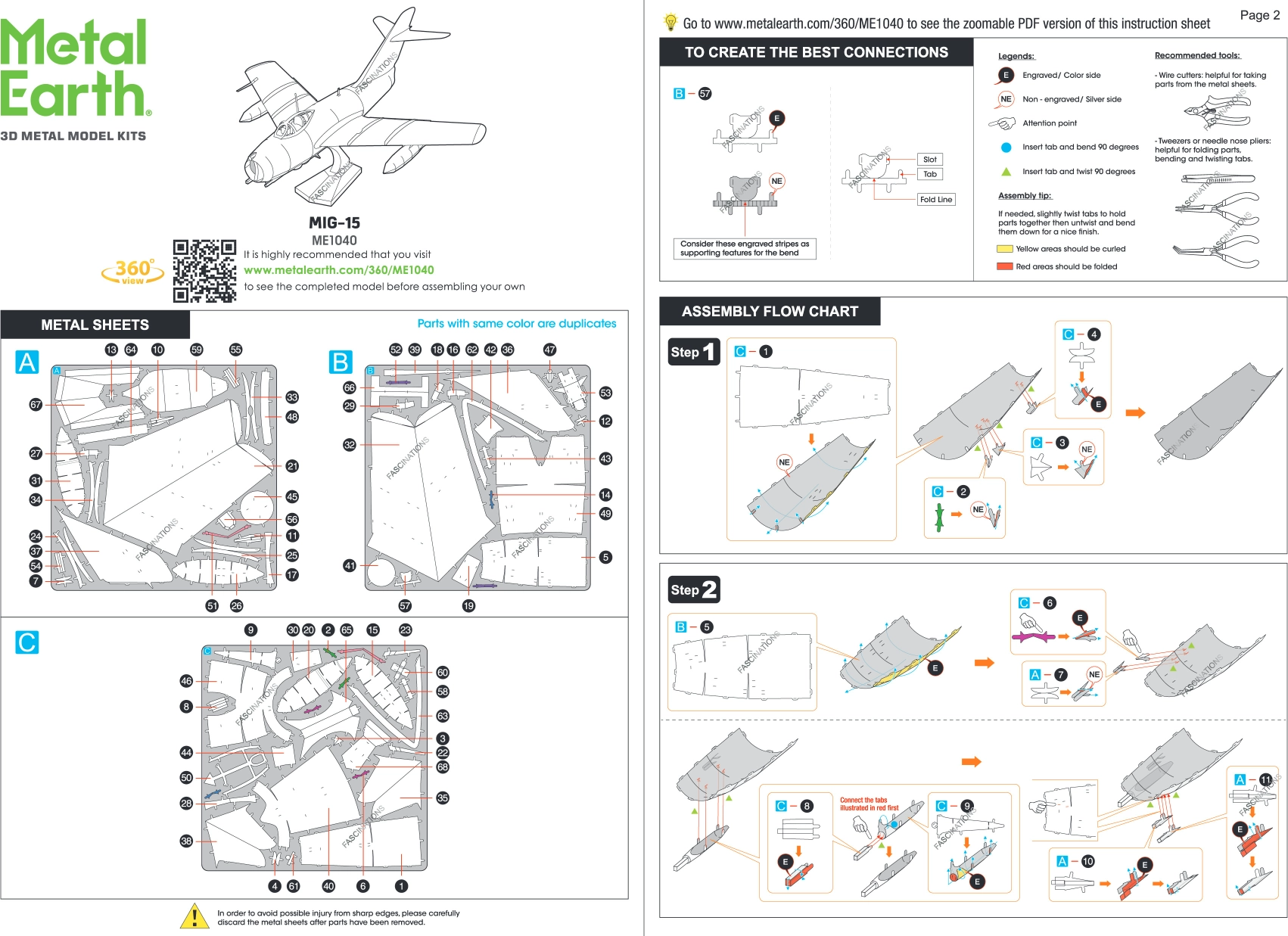 Dijelovi od nehrđajućeg čelika fino su gravirani laserom, što stvara vjerodostojnu panelizaciju i embleme. Rezultat je dojmljiv metalni model MiG‑15 s autentičnim izgledom.