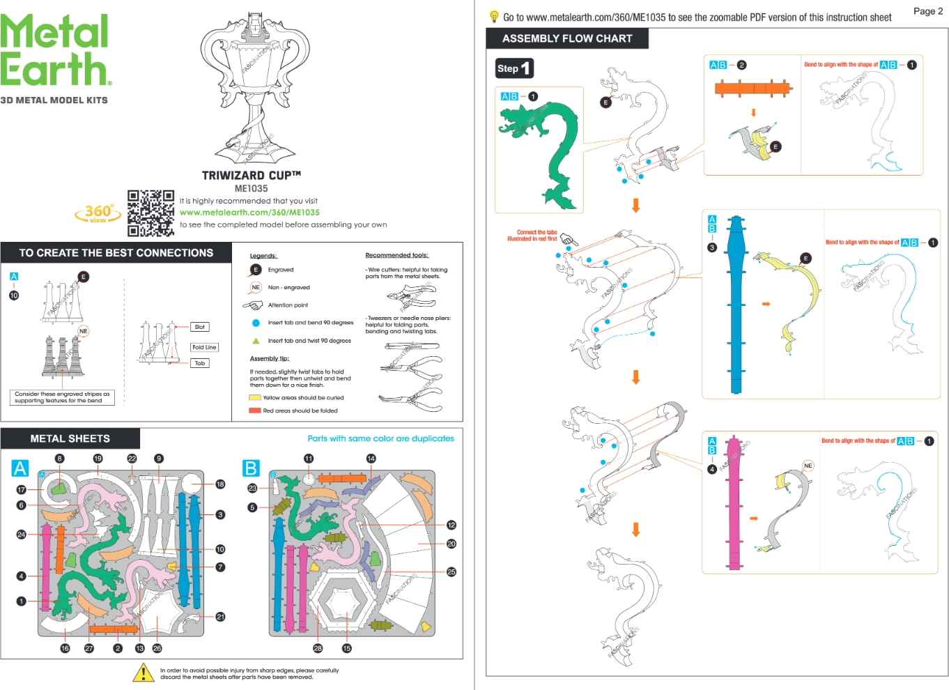Ovaj metalni 3D model vjerno prikazuje Plameni pehar s bogato ukrašenim drškama u obliku zmajeva i izraženim jetkanim uzorkom. Od tankih čeličnih pločica složit ćete elegantan trofej sa sjajnom površinom koji će postati upadljiv dekorativni dodatak i kolekcionarski komad za obožavatelje Harryja Pottera.