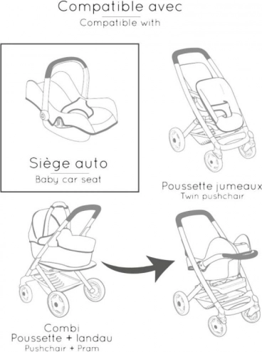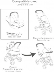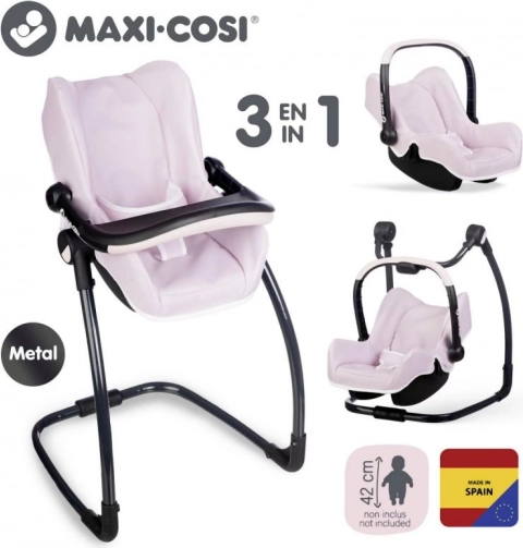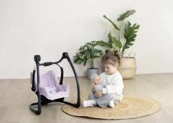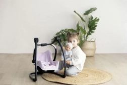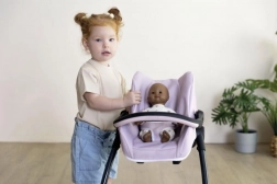 Univerzalan set za male njegovateljice: autosjedalica, njihaljka i visoka hranilica za lutke do 42 cm u jednom. Zahvaljujući pametnoj konstrukciji lako prebacujete između načina rada i uživate u igri hranjenja i njihanja. 3-u-1 izvedba, stabilan okvir, odvojiva ploča i udobno podstavljanje u svijetloružičastoj boji podupiru sigurnu i kreativnu igru.