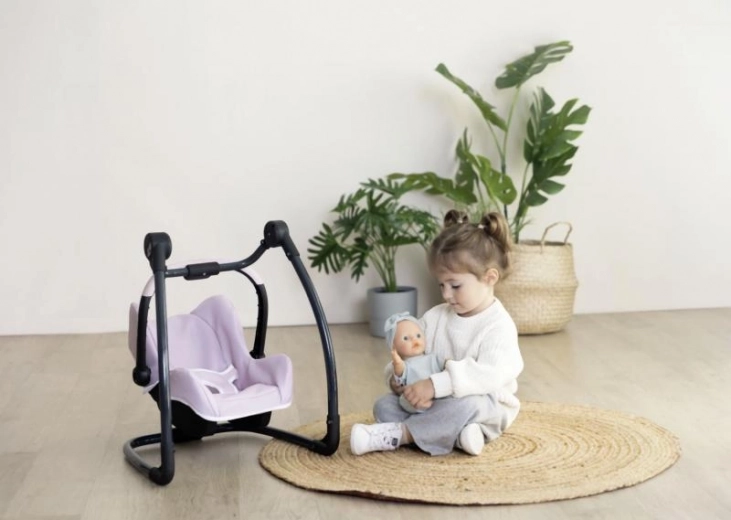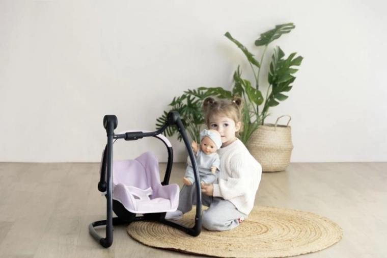 Ovaj promišljeni 3-u-1 set pretvara brigu o lutkama u realističnu i zabavnu igru. Autosjedalicu lako objesite u okvir i u trenu postaje nježna njihaljka. Okretanjem konstrukcije dobivate visoku hranilicu s pladnjem – idealno za hranjenje lutaka do 42 cm. Robusna konstrukcija i mekano podstavljanje osiguravaju udobnost lutke i stabilnost pri svakodnevnoj igri.