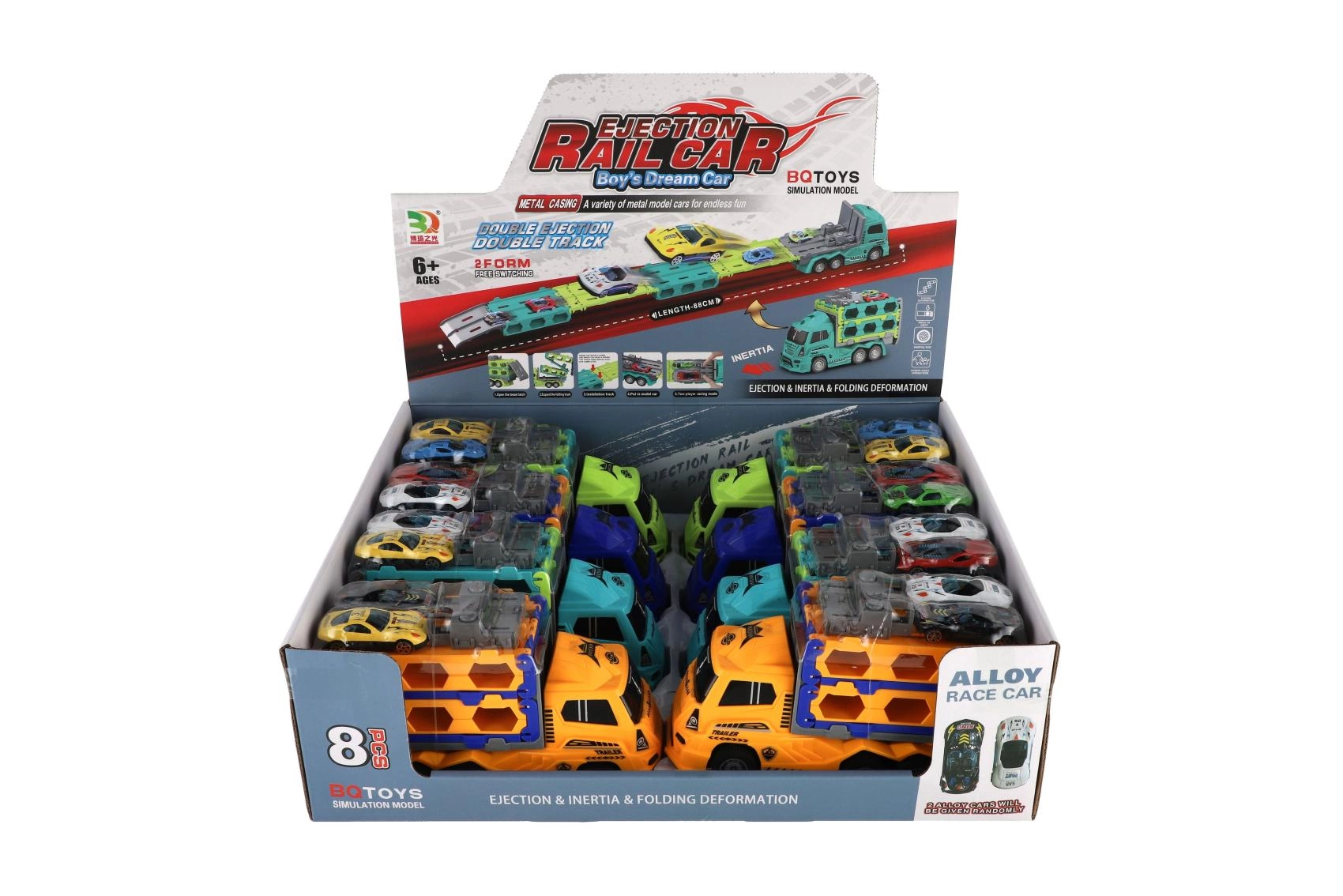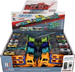 U pakiranju se nalaze 2 sportska autića koja se mogu utovariti na gornju platformu i jednostavno prevoziti.