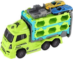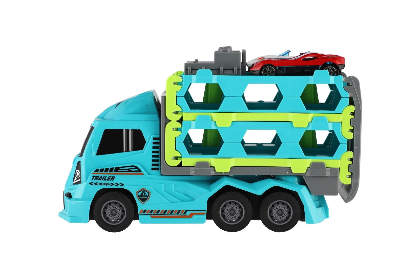 Ovaj izdržljiv plastični kamion služi kao transporter za male trkaće automobile i djeci nudi puno akcijske zabave. Zahvaljujući inercijskom pogonu, nakon natega sam kreće, što ga čini idealnim za dinamičnu igru na tepihu i glatkim površinama.