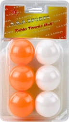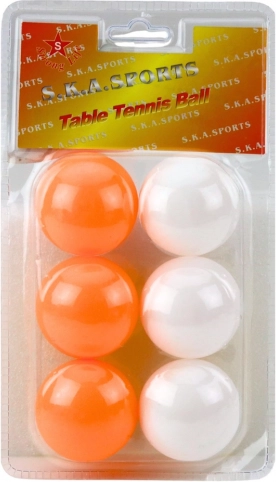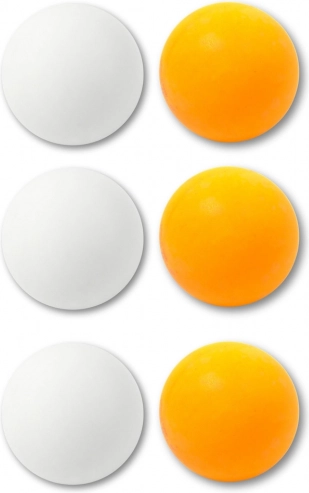 Univerzalne ping-pong loptice u pakiranju od 6 komada u bojama bijela i narančasta. Pogodne za rekreativnu igru i trening, izrađene od izdržljive i lagane plastike za pravilan odskok i ugodan doživljaj igre.