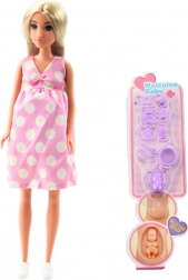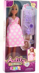 Lutka ANLILY u trudnoći s haljinom na točkice i dodacima za bebu