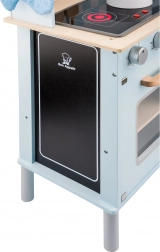Stilska dječja kuhinjica u svijetloplavoj boji razveselit će male kuhare od 3 godine. Nudi realistične elemente kao što su pećnica, mikrovalna i umivaonik s slavinom, dopunjene bogatim priborom. Sjajna igračka za razvoj fine motorike, kreativnu igru uloga i maštu.